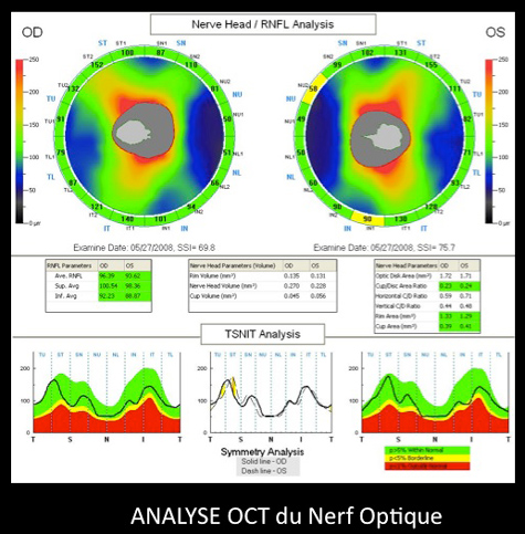 En effet, en cas d'anomalies de celui-ci, la chirurgie expose à un risque majoré d’oedème de cornée. L’OCT permet de vérifier l'absence d'anomalie au niveau du nerf optique (glaucome) ou de la macula (membrane épirétiniene, dégénérescence maculaire liée à l’age, …).