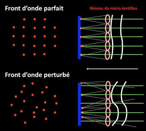 L’analyse de la déformation de cette grille lors par son passage à travers le système optique oculaire permet de quantifier les aberrations optiques de bas et haut degré. Plus les points sont éloignés de leur position théorique, plus le degrés d’aberration optique de haut degrés est important.
