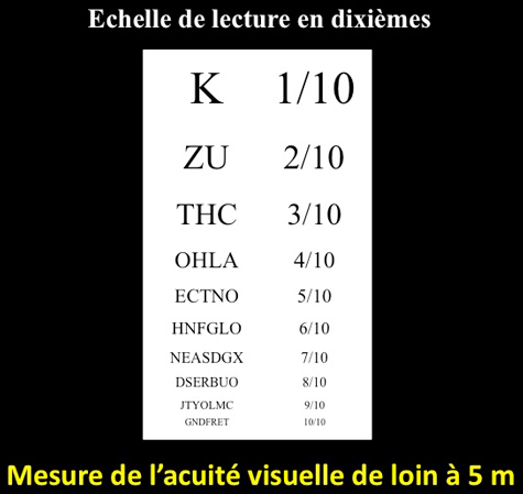 L’acuité visuelle est logarithmique. L’écart entre 8 et 10/10 est beaucoup plus faible qu’entre 1 et 3/10.