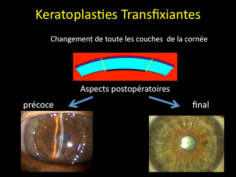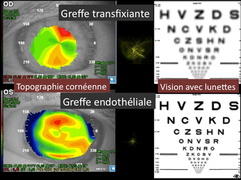 La récupération visuelle est progressive, mais beaucoup plus rapide qu’après une greffe transfixiante. En effet, une récupération visuelle notoire existe en général dès la fin de la première semaine postopératoire.