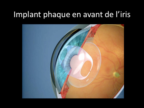 La mise en place d’un implant à l'intérieur de l'œil est une technique proposée depuis de nombreuses années. On parle d'implants phaques car le cristallin est laissé en place.