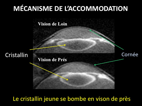 La presbytie correspond à la perte progressive de l’accommodation, mécanisme qui permet de voir net toutes distances. Elle commence vers 45 ans et évolue jusqu’à 60 ans. Elle est secondaire au durcissement progressif su cristallin.