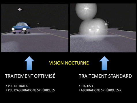 La réalisation de profils optimisés (PROLATE) est préférable pour obtenir la meilleure qualité de vision nocturne possible, en limitant l’induction d’aberrations sphériques, responsables des halos nocturnes.